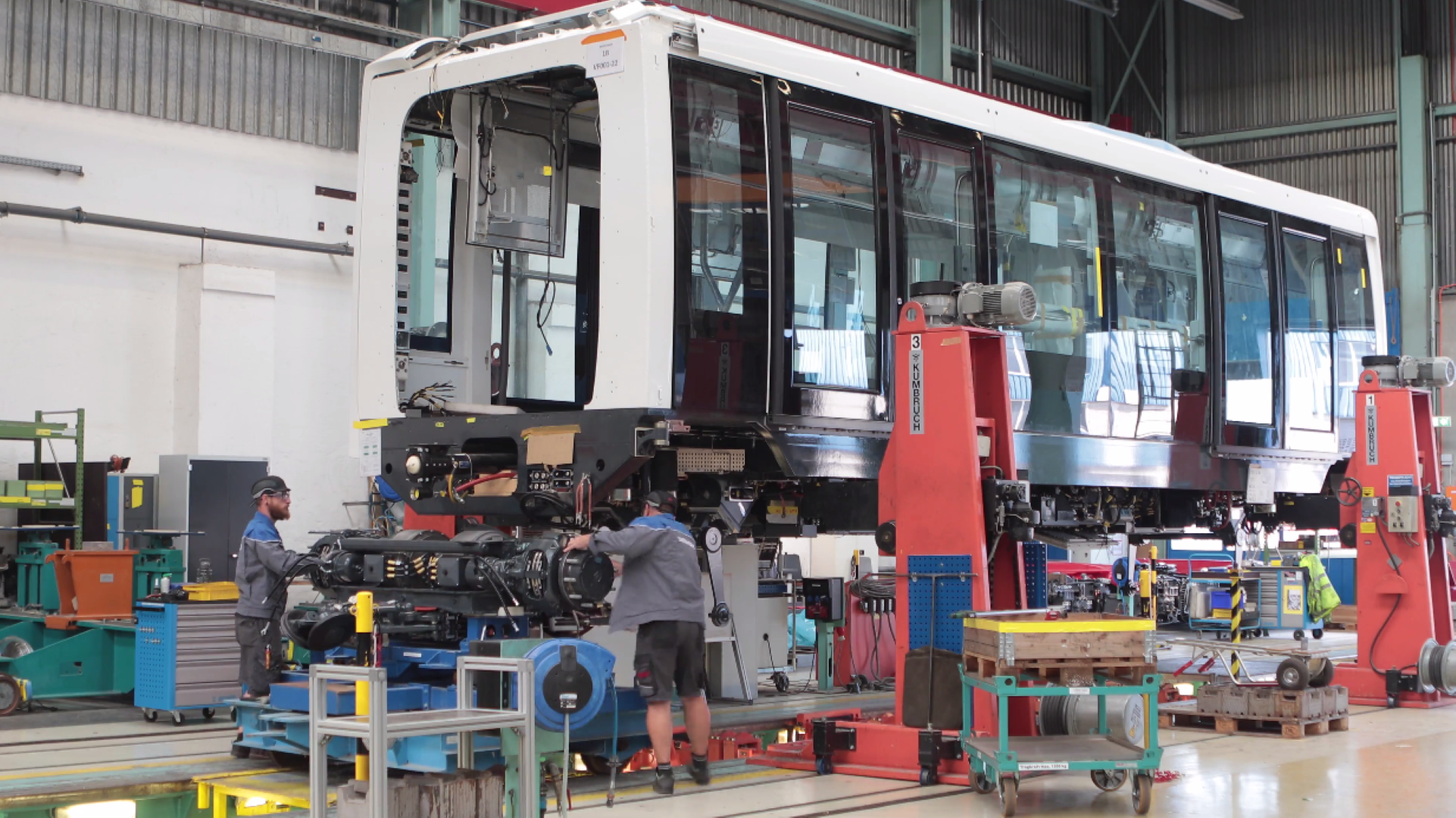 - Im Oktober 2022 ist der erste Zug der Sky Line-Bahn angeliefert worden. Bis Ende 2023 werden alle zwölf Züge (24 Fahrzeuge) im neuen Werkstattgebäude eingetroffen sein.